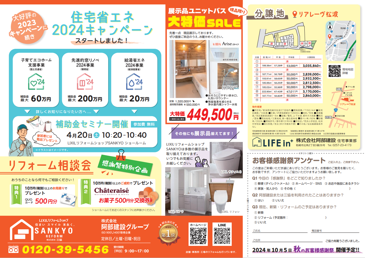 阿部建設・SANKYOの『春のお客様感謝祭』が今年も4月20日に開催いたします😊